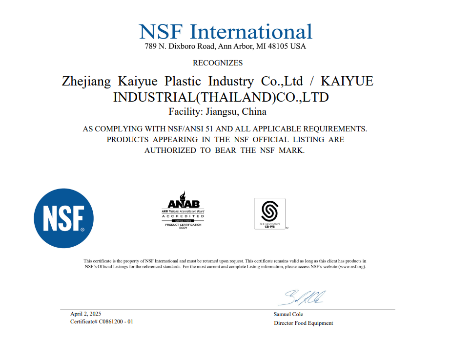 产品名称 NSF51认证 产品型号 下载链接 认证证书 中国绿色产品认证 浙江制造认证 WRAS认证 TUV认证 NSF51认证 AB1953认证 NSF61认证 CUPC认证 ACS认证 ISO职业健康体系认证 ISO环境体系认证