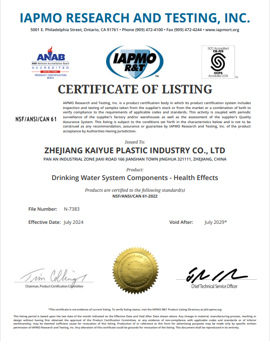 产品名称 NSF61认证 产品型号 下载链接 认证证书 中国绿色产品认证 浙江制造认证 WRAS认证 TUV认证 NSF51认证 AB1953认证 NSF61认证 CUPC认证 ACS认证 ISO职业健康体系认证 ISO环境体系认证